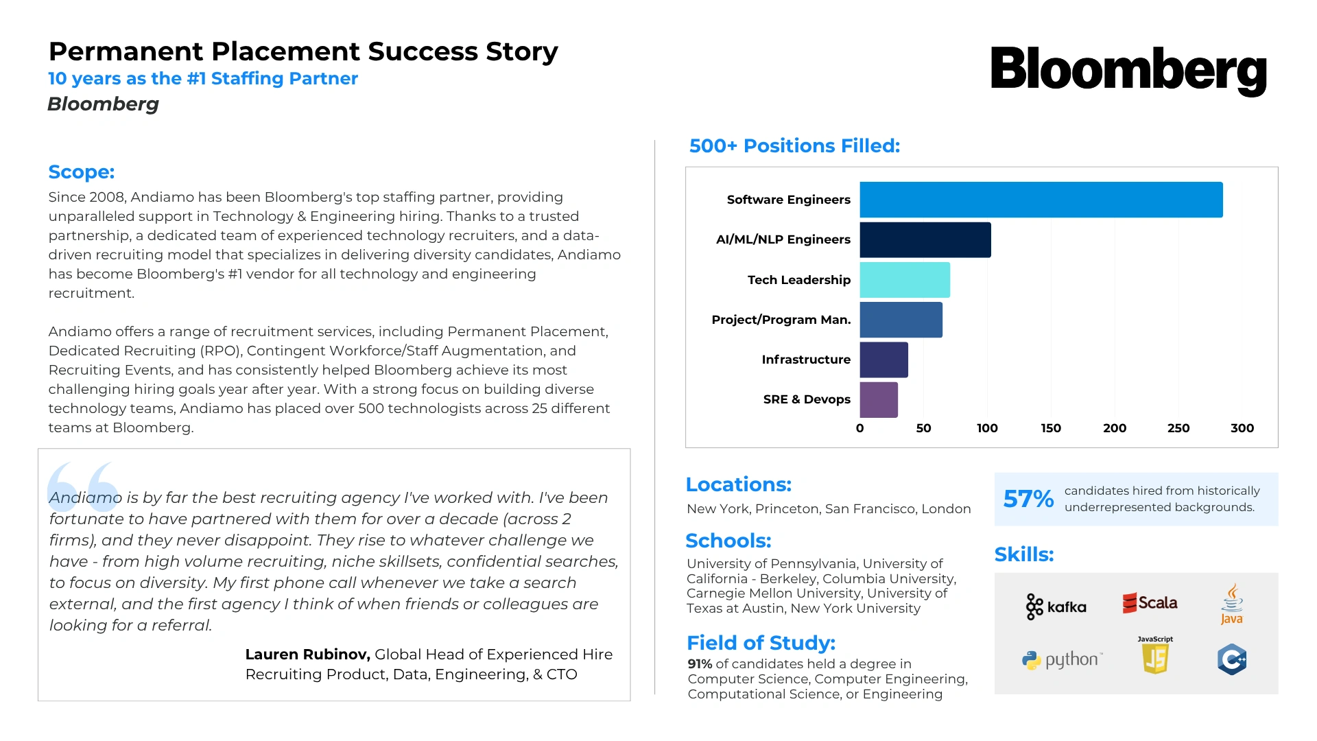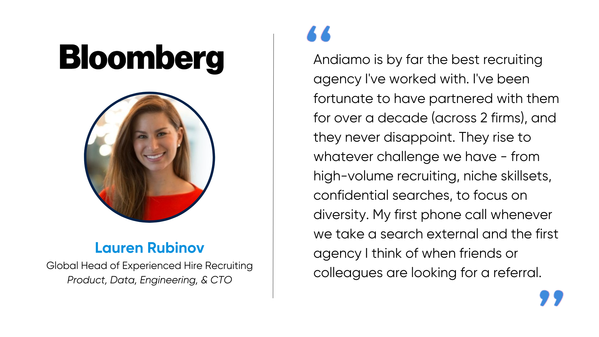 With over 20 years of proven leadership in Executive Search, Andiamo has assisted some of the world’s most renowned companies in building effective and diverse senior leadership teams. Find your next great leader to take your organization to the next level.