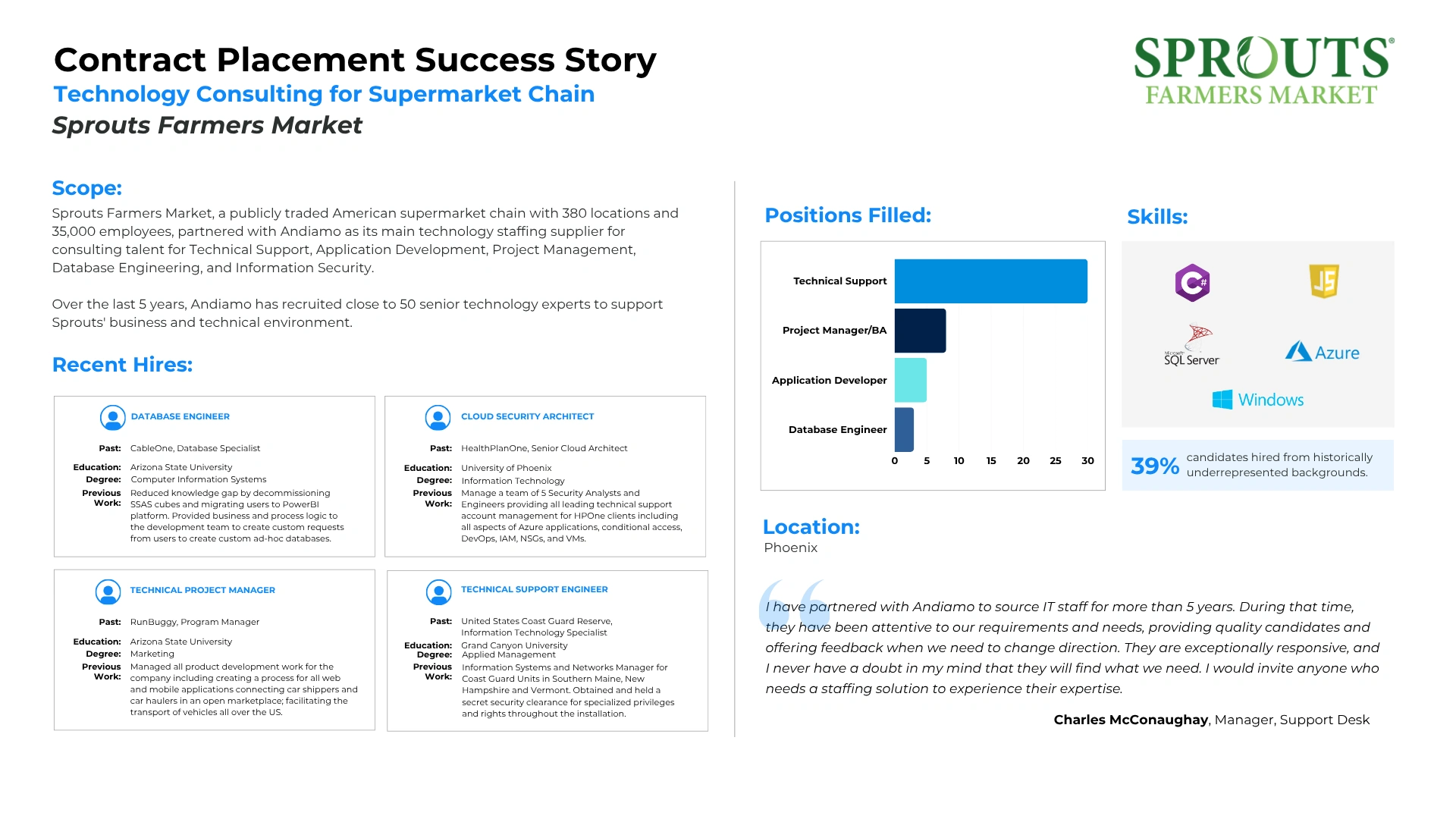 Read how we successfully partnered with companies utilizing our Contract Staffing Services to meet their staffing goals. Every company has unique challenges and we pride ourselves in our customized solutions.