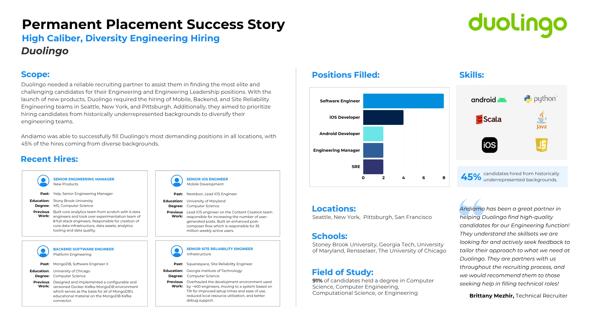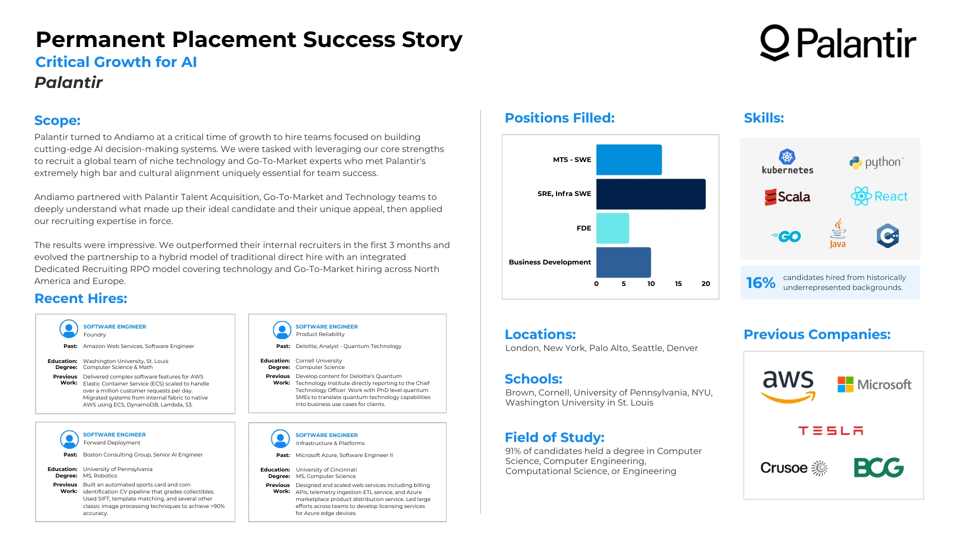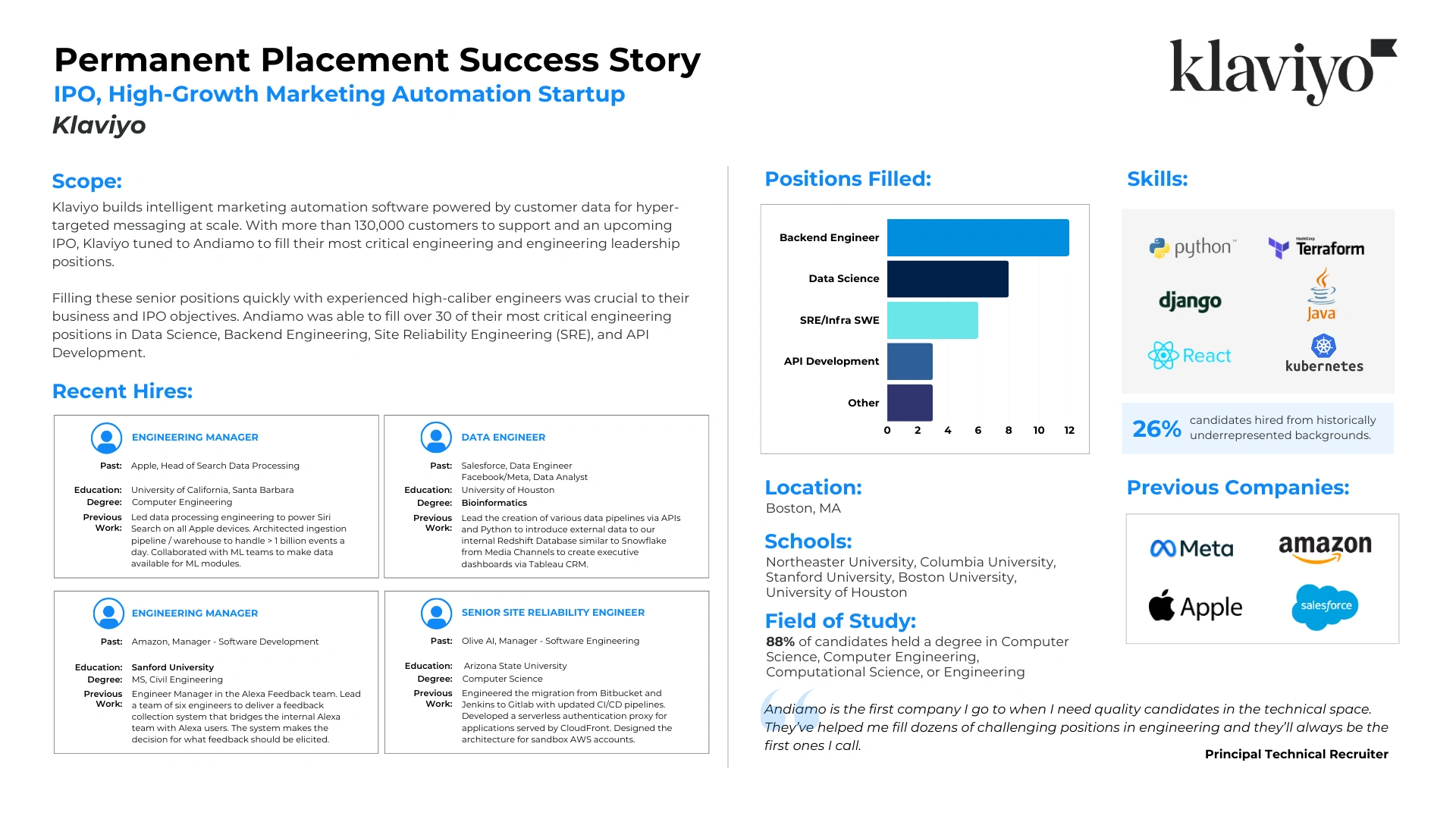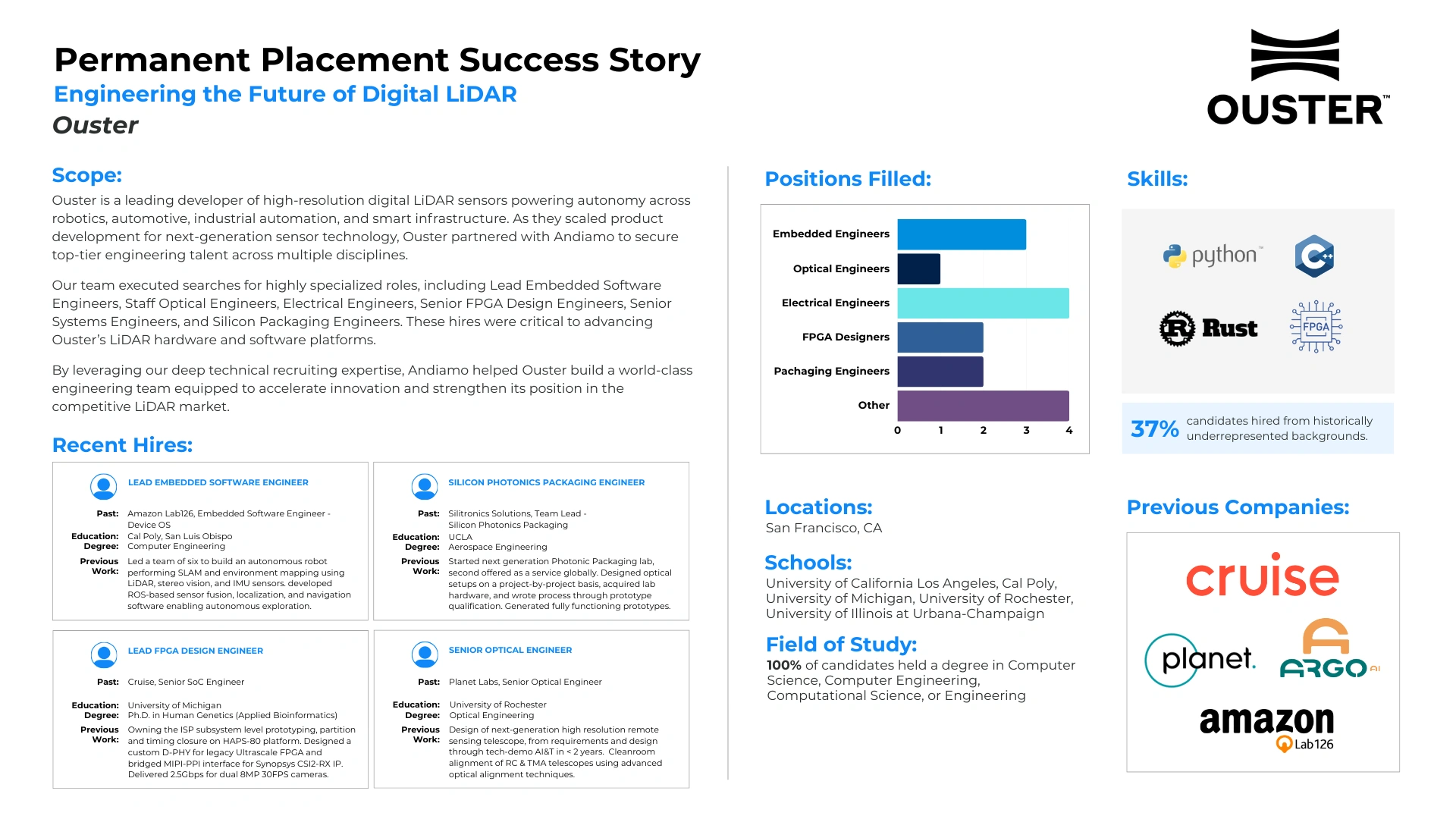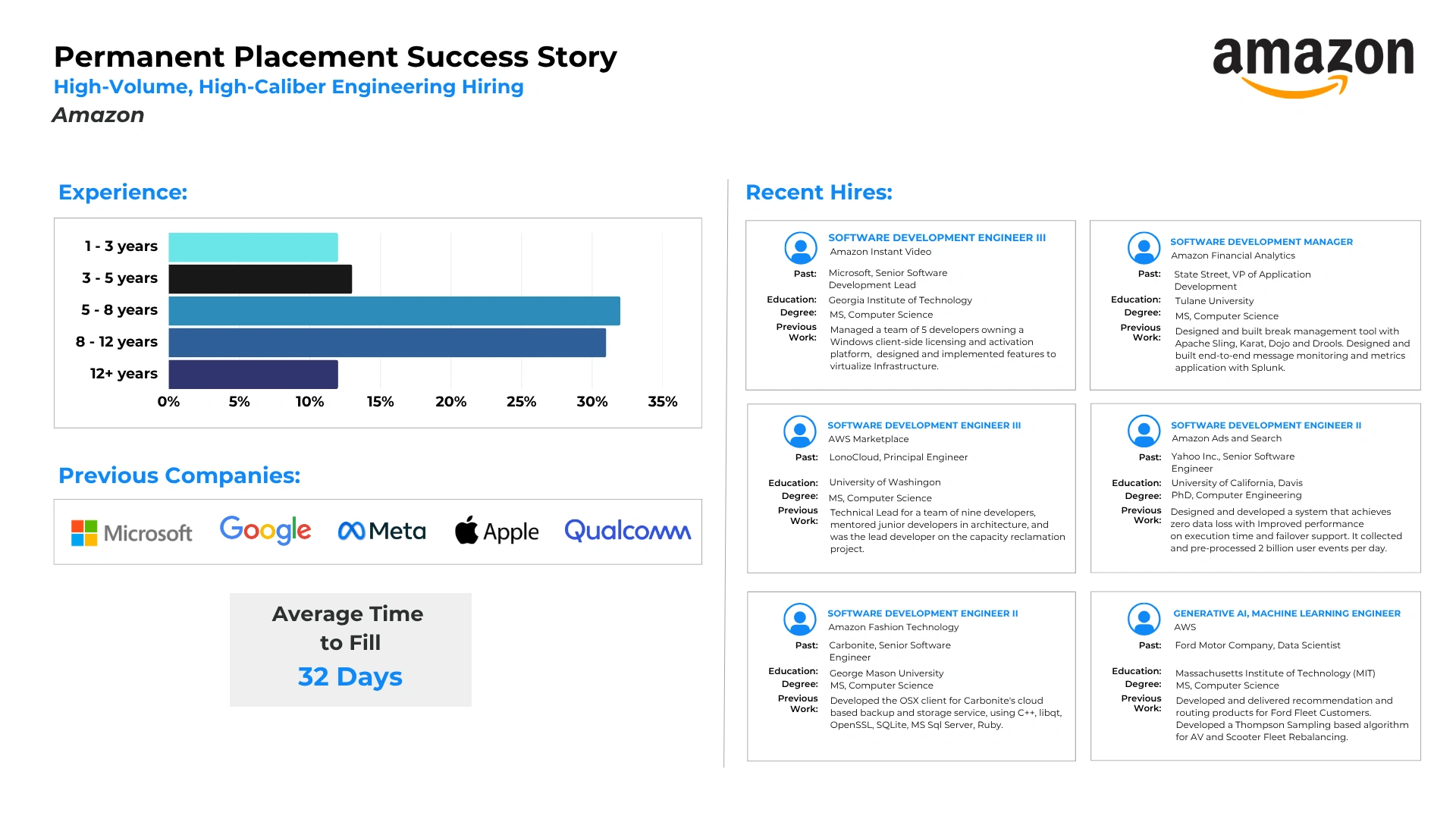 Read how we successfully partnered with companies utilizing our Permanent Placement Services to meet their technical and go-to-market staffing goals. Every company has unique challenges and we pride ourselves in our customized solutions.