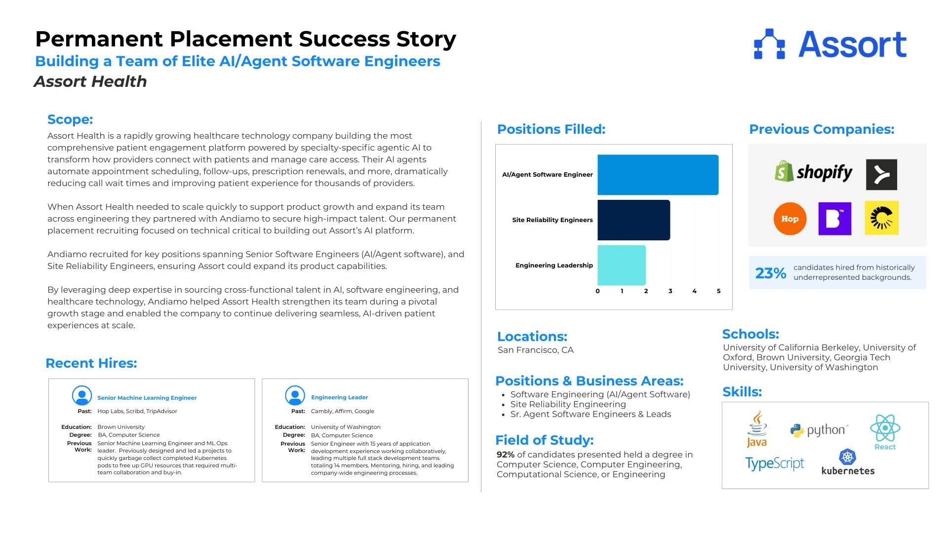 Read how we successfully partnered with technology and AI companies, utilizing our Services to meet their staffing goals. Every company has unique challenges, and we pride ourselves on our customized solutions.